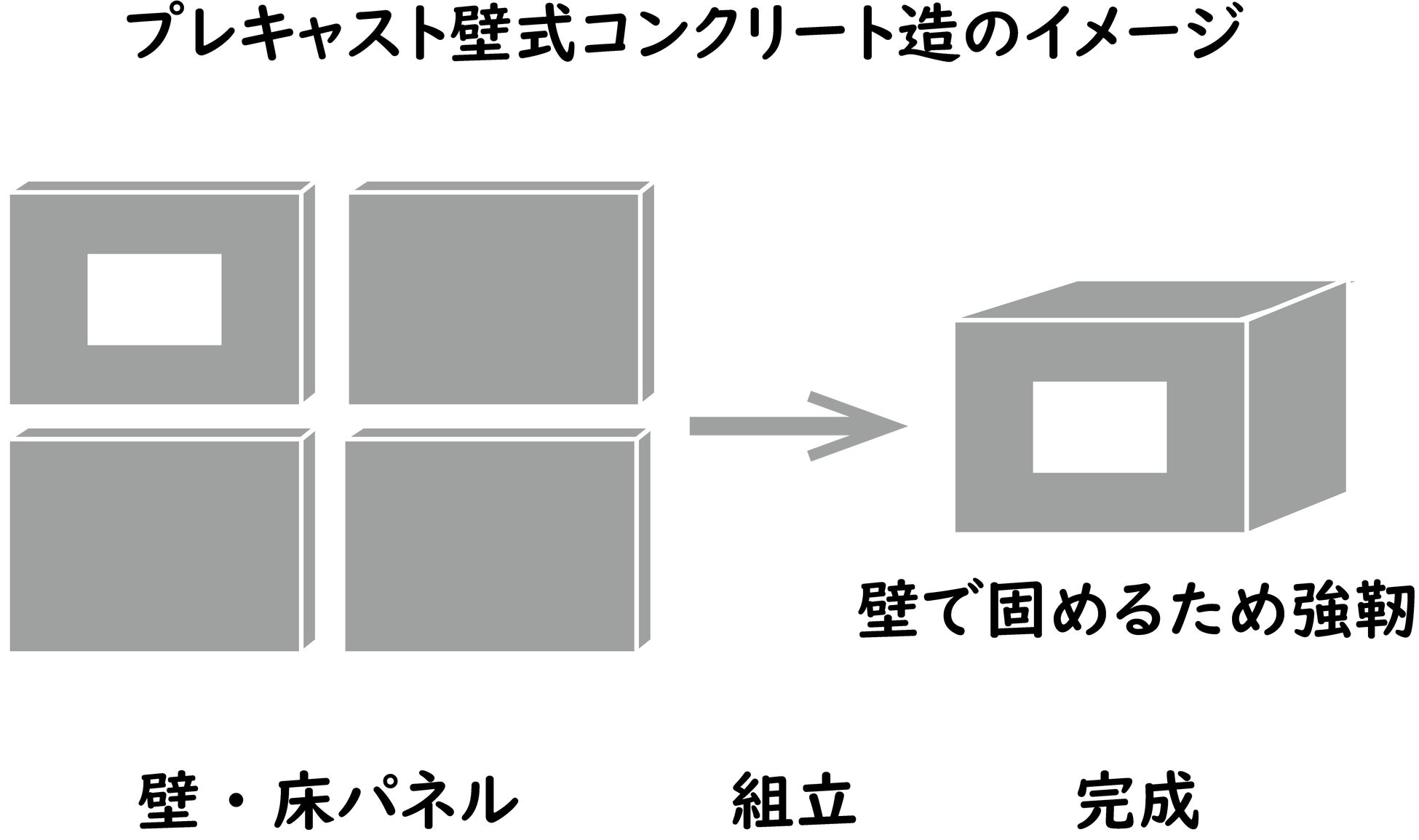 工場製のコンクリートパネルを現地で組み立てる構造。地震水害等の自然災害に強く、人手不足解消に役立ちます。