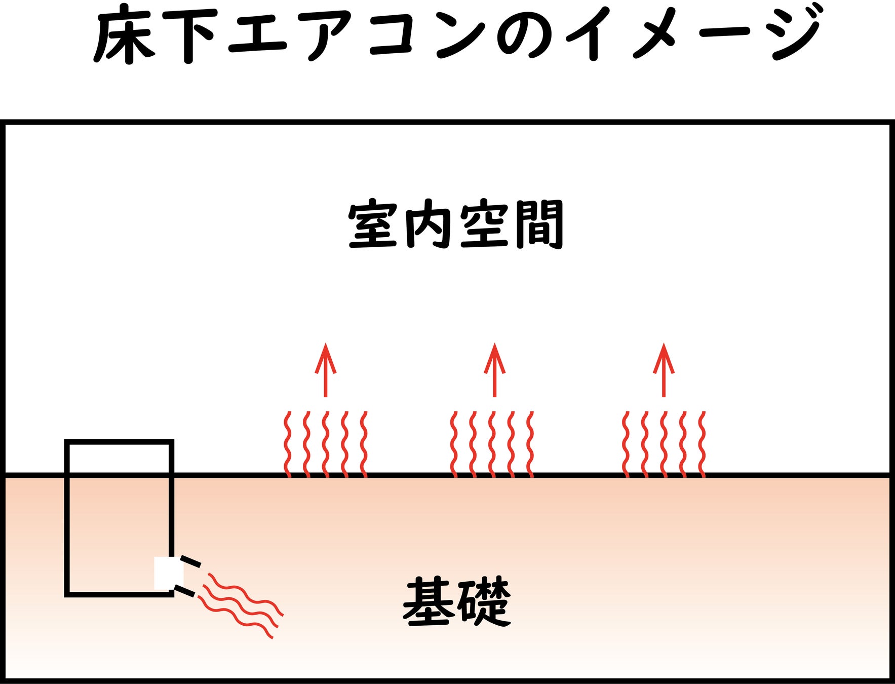 聞き慣れない言葉かもしれませんが、床の下、つまり基礎の中にエアコンを設置し暖房を行う方法です。
